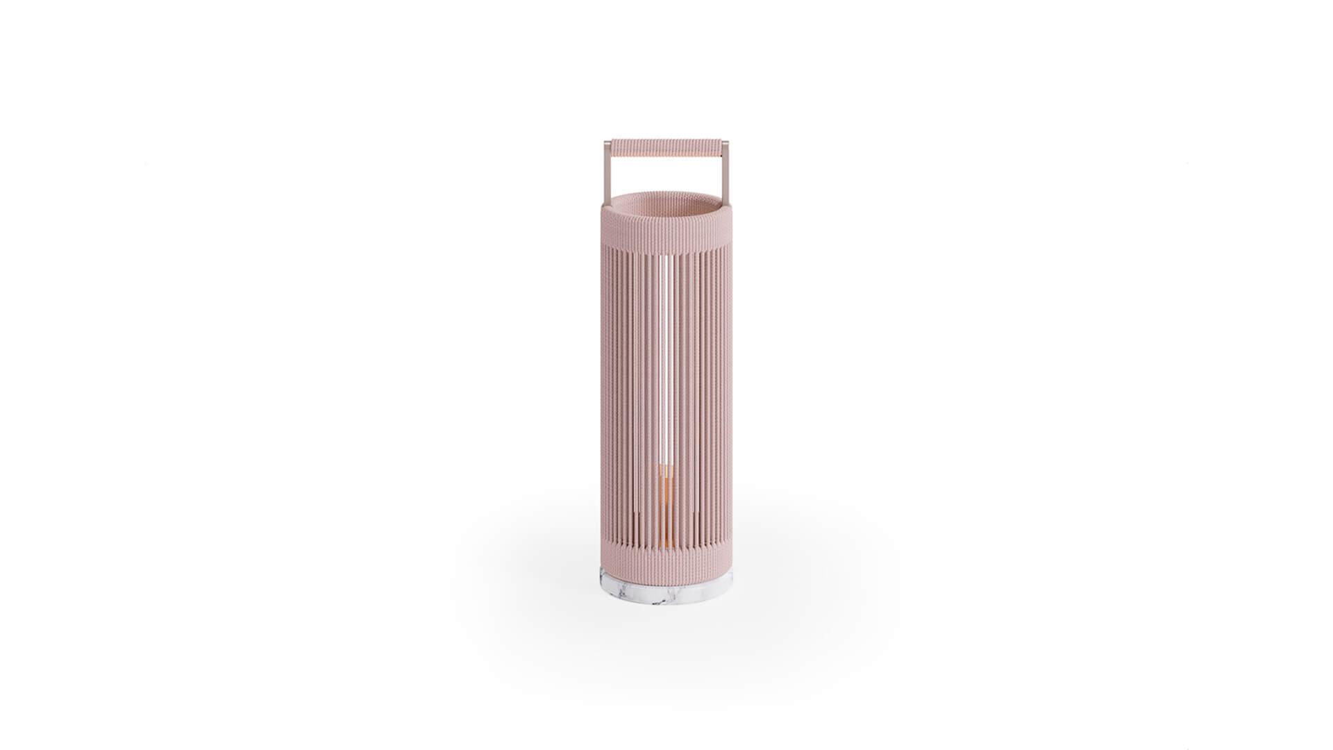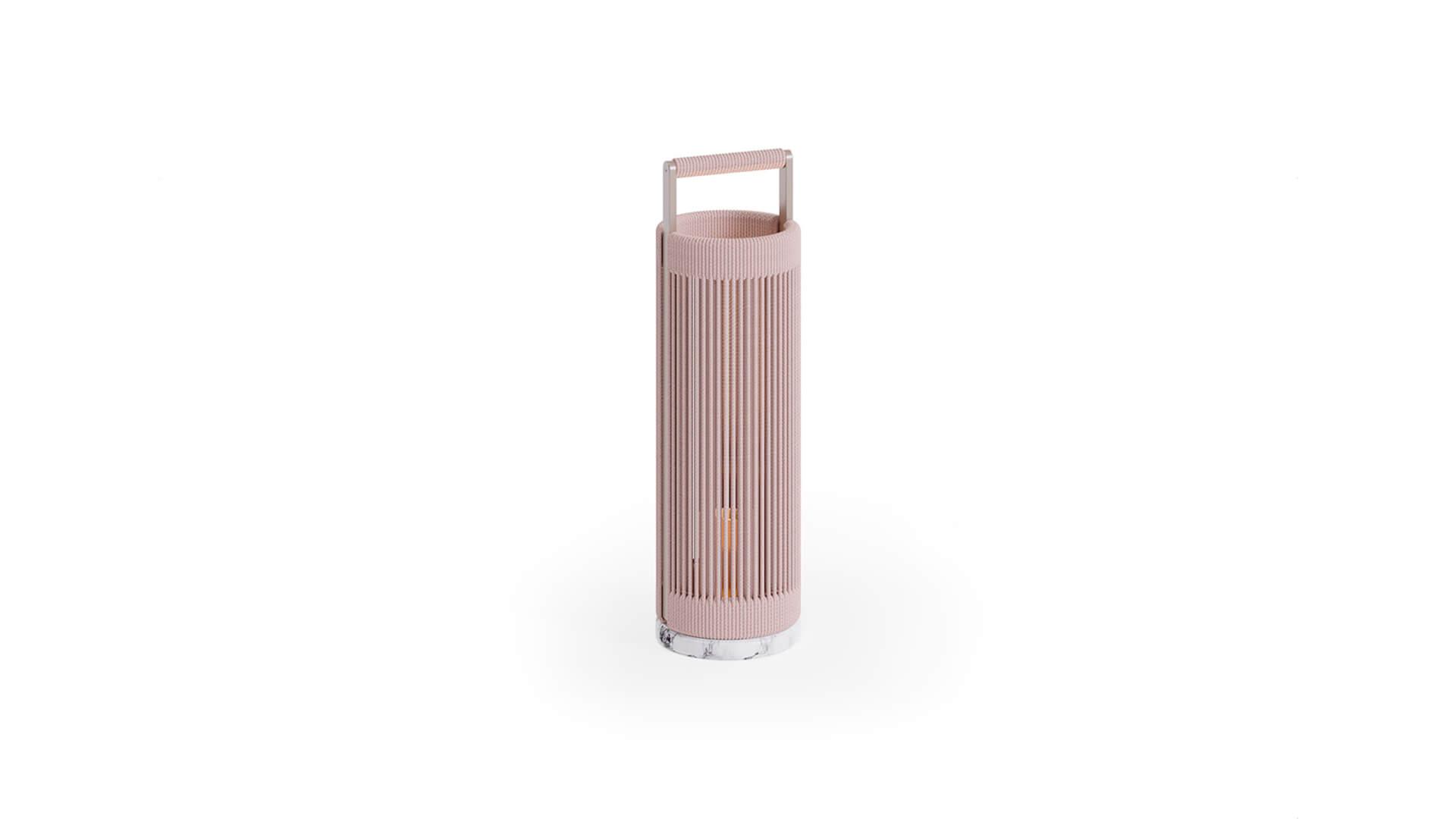 Каркас из алюминия с плетением AuricaRope и мраморное основание подчеркивают премиальное направление коллекции. Световой элемент работает от аккумулятора, что делает аксессуар мобильным и удобным для использования в разных зонах.