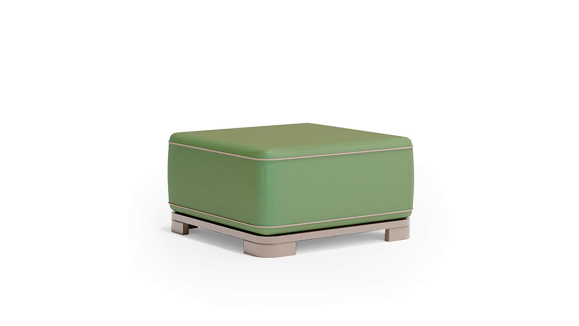 Обивка выполнена из акриловой водоотталкивающей ткани, которая устойчива к загрязнениям, влаге и ультрафиолету. Пуф органично вписывается в концепцию коллекции