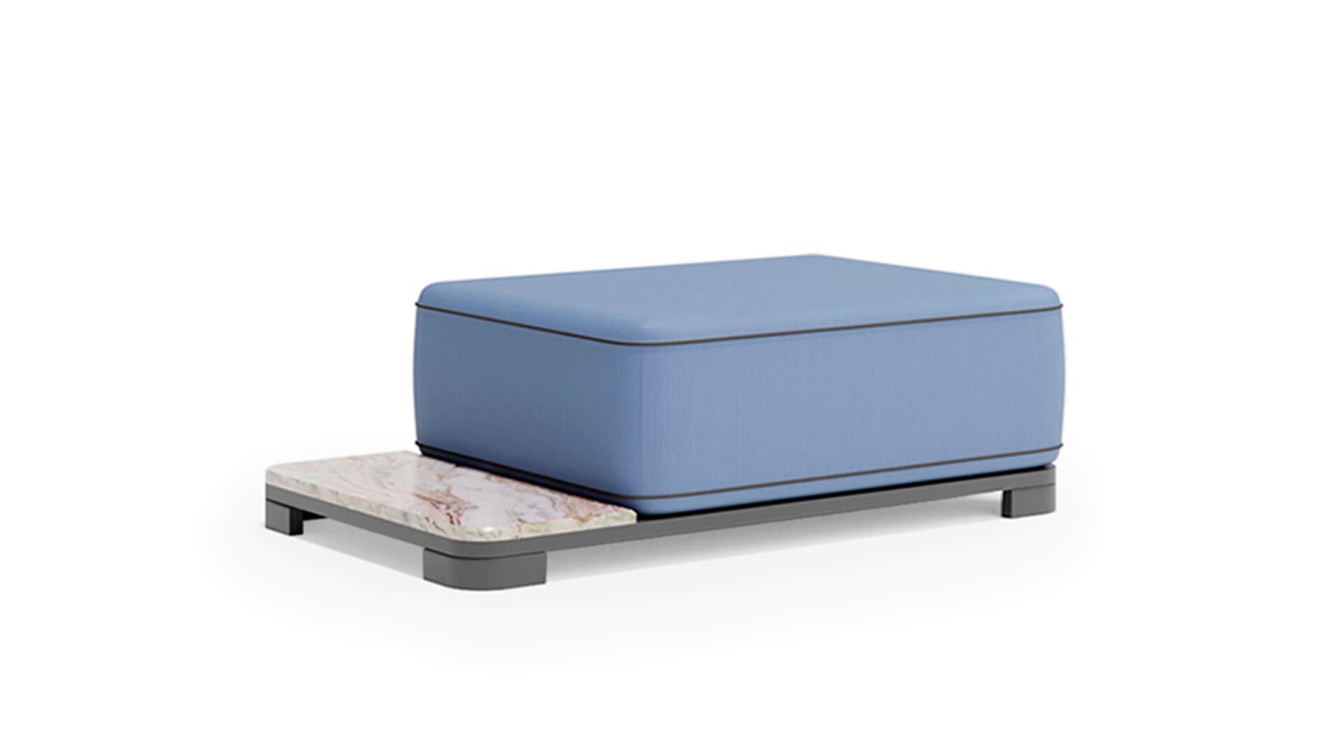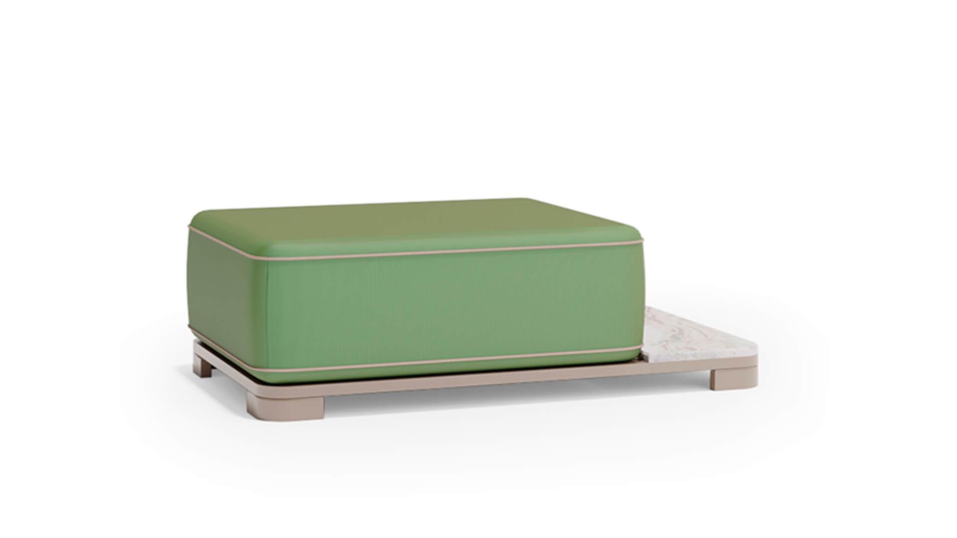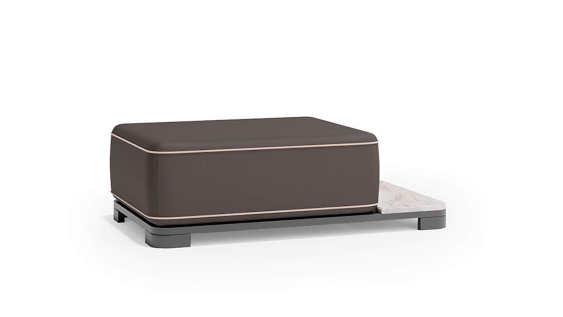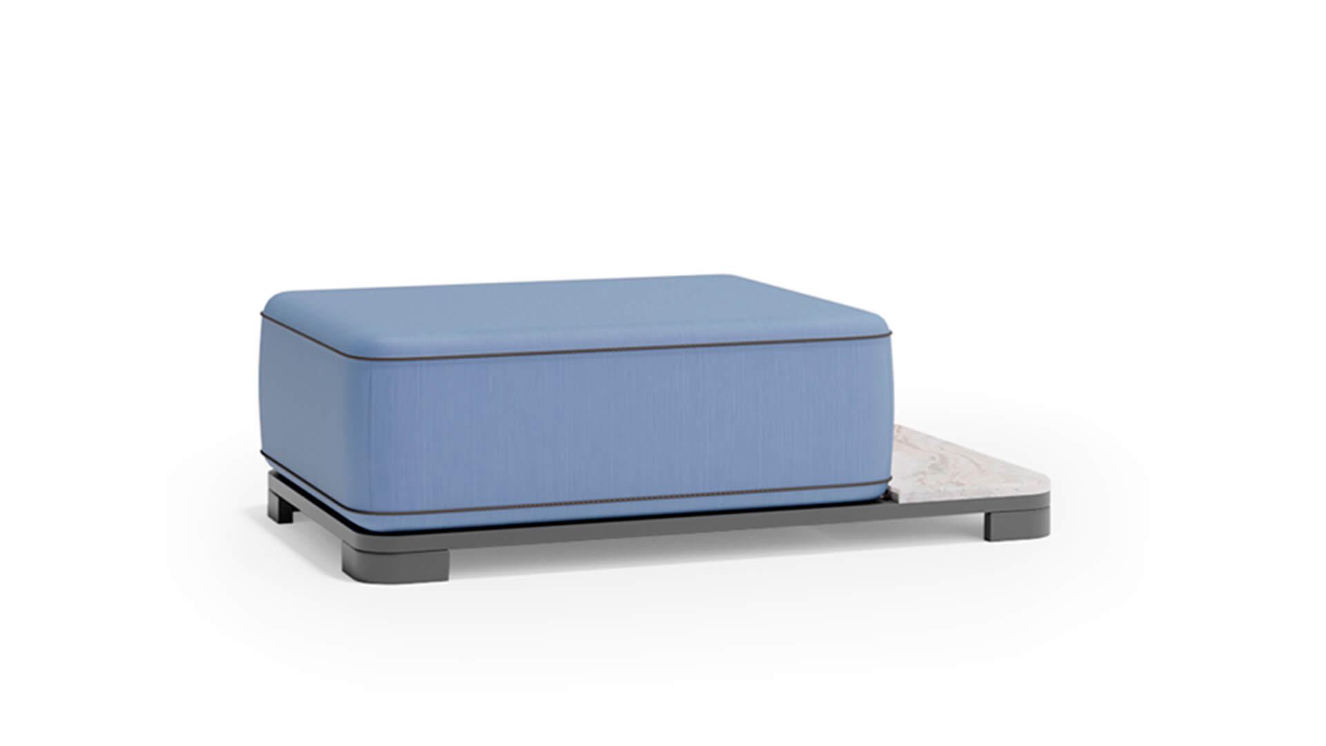 Обивка выполнена из акриловой водоотталкивающей ткани, которая устойчива к загрязнениям, влаге и ультрафиолету. Пуф органично вписывается в концепцию коллекции