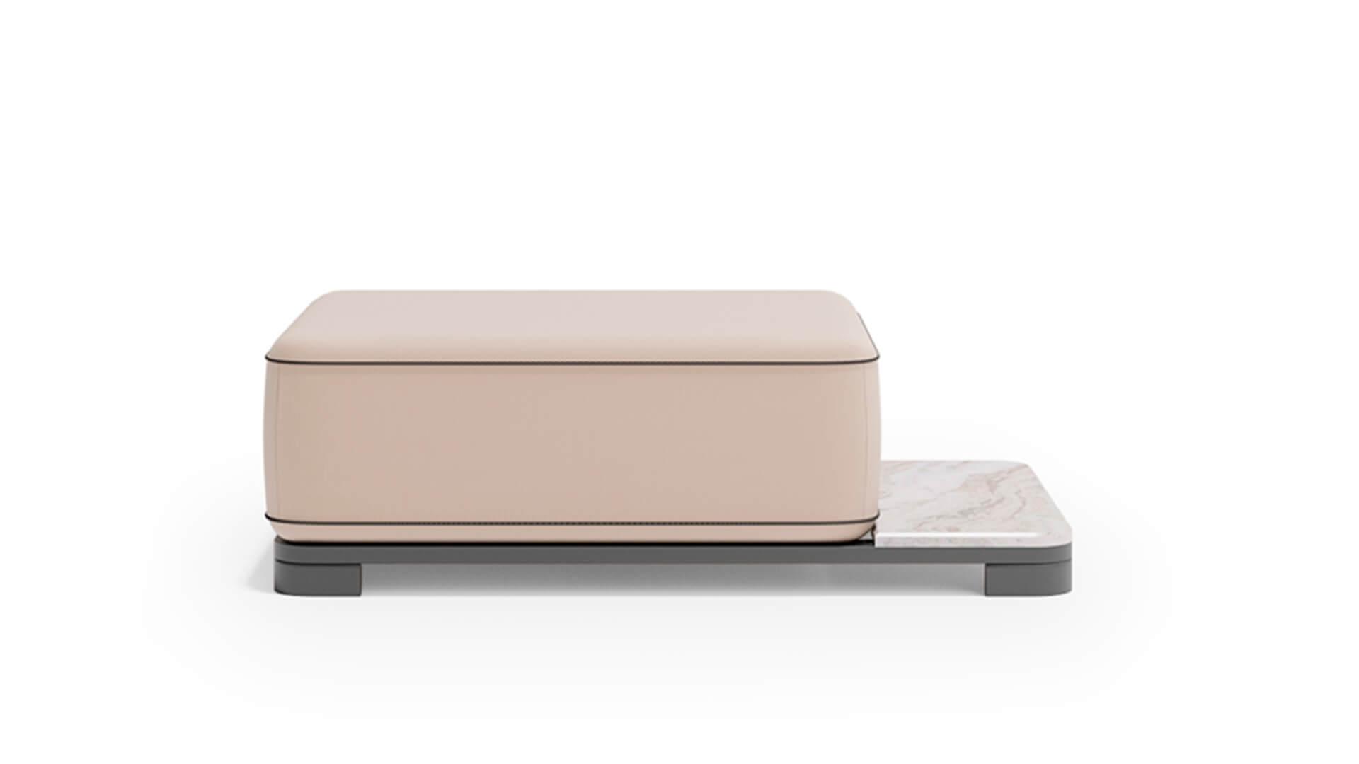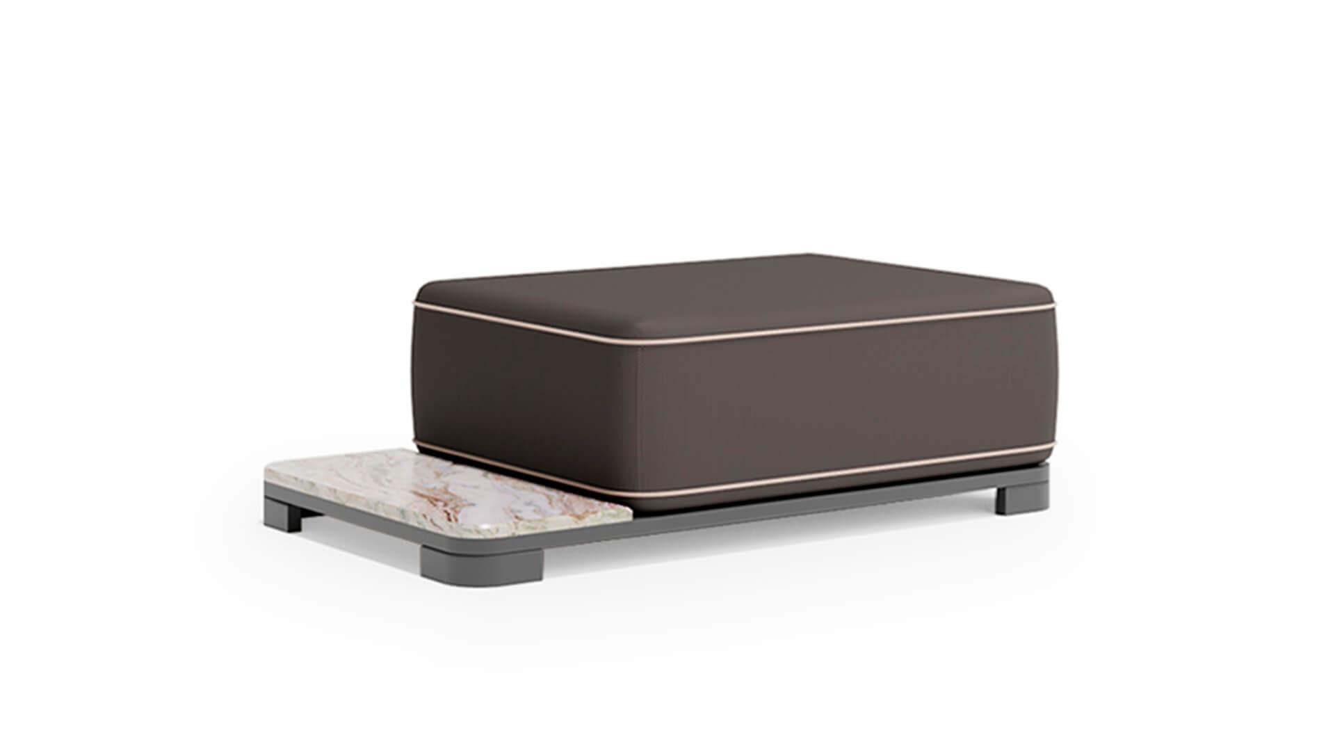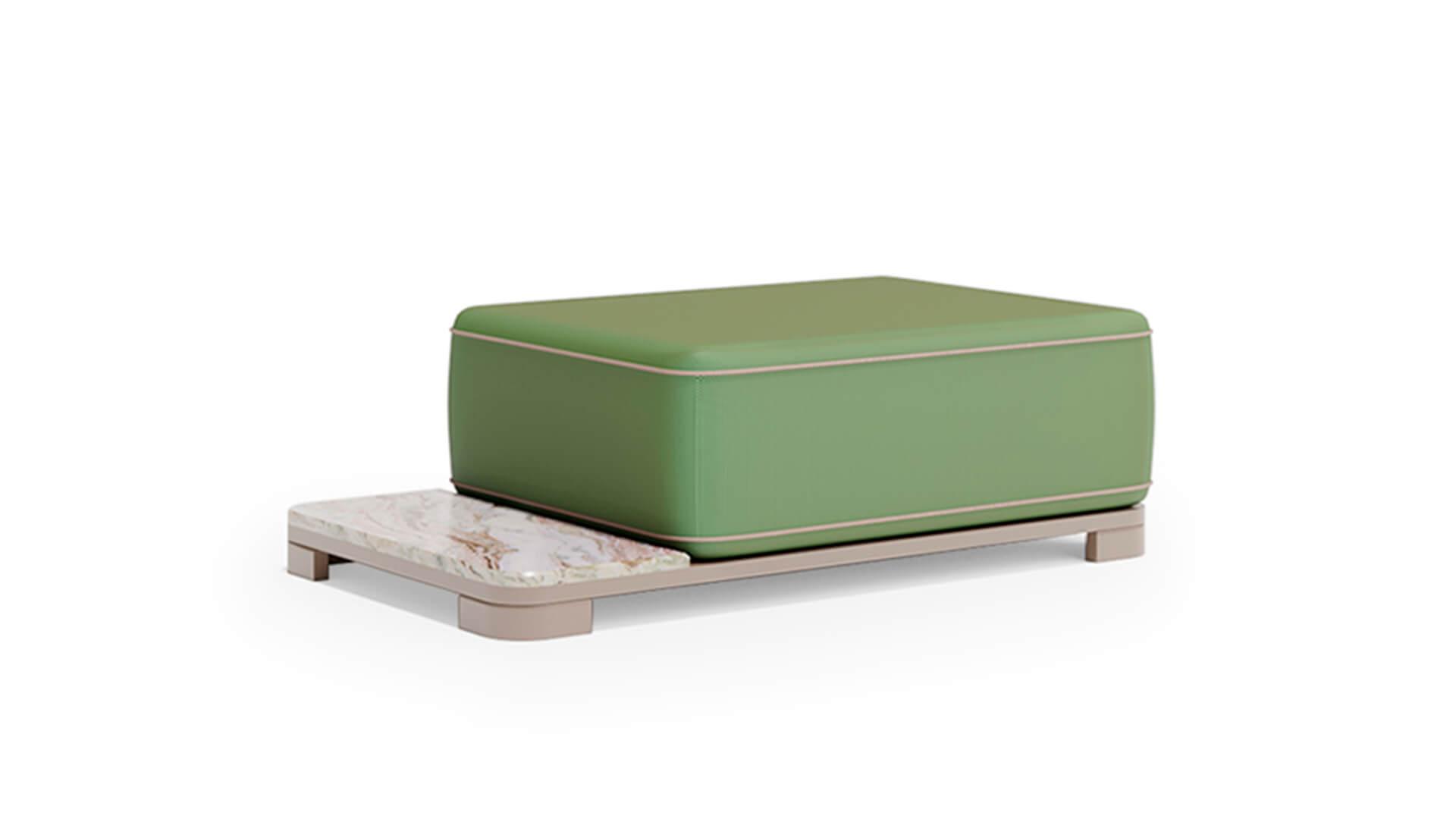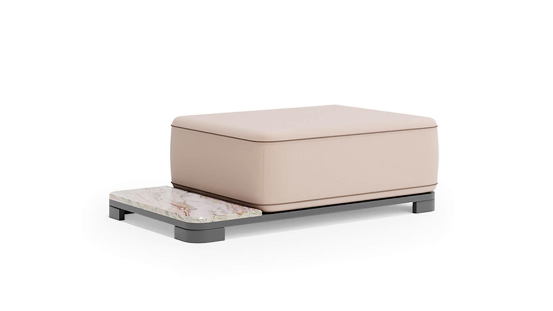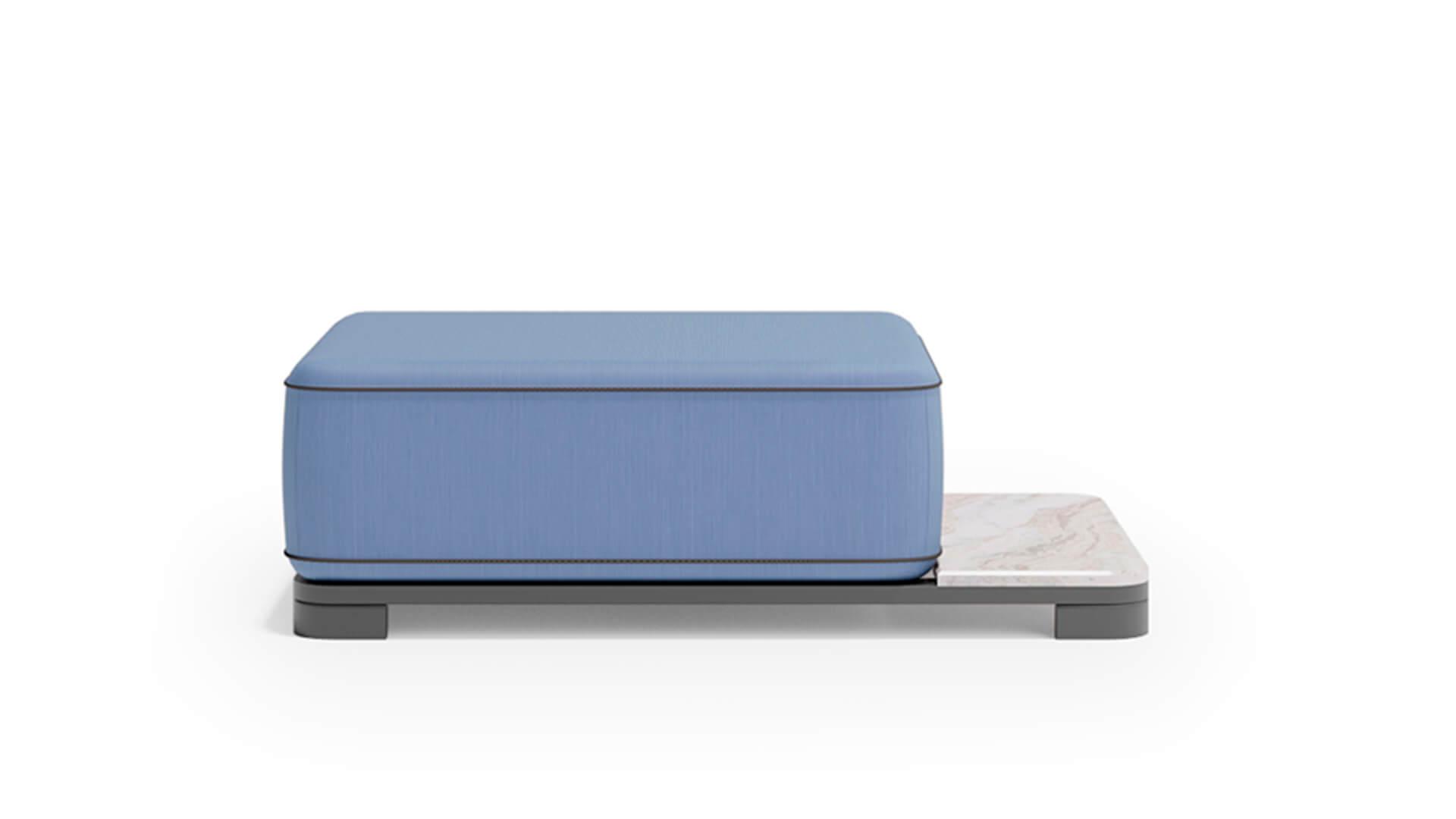 Обивка выполнена из акриловой водоотталкивающей ткани, которая устойчива к загрязнениям, влаге и ультрафиолету. Пуф органично вписывается в концепцию коллекции