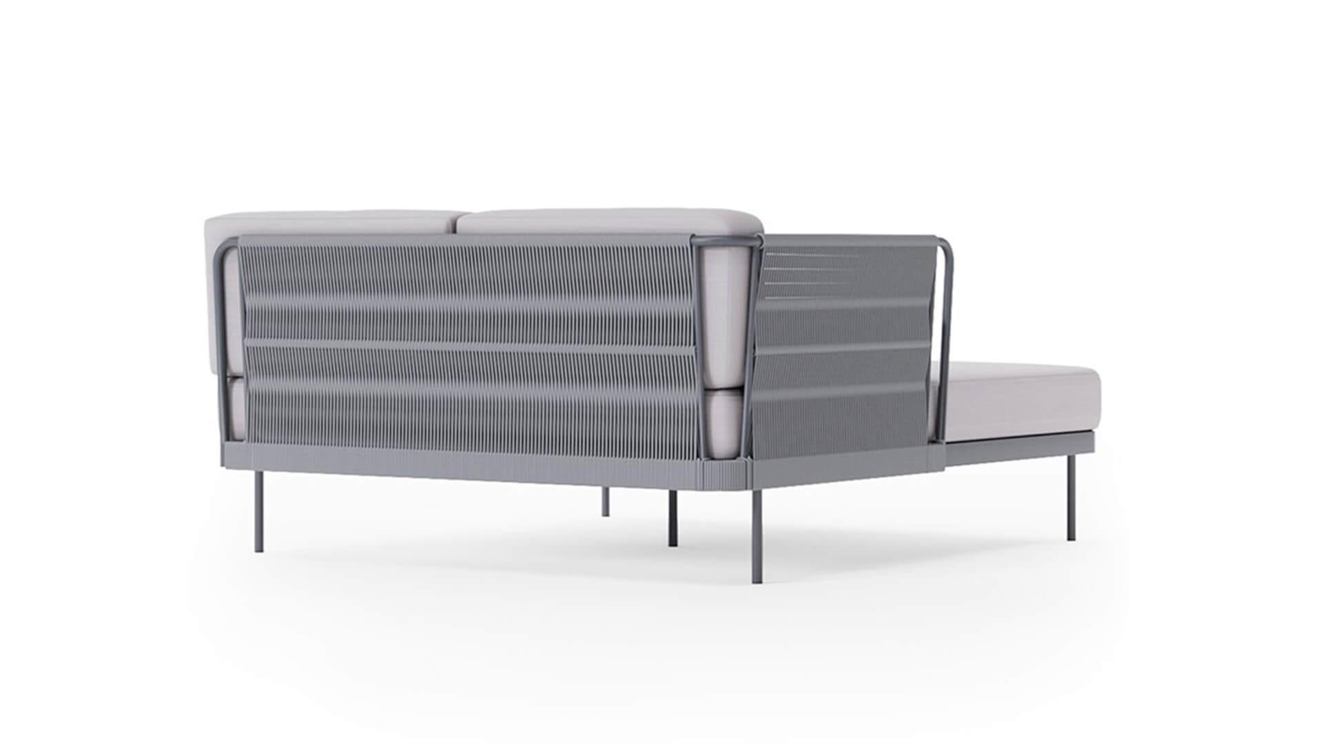 Софа сделана из алюминиевого каркаса, плетения
