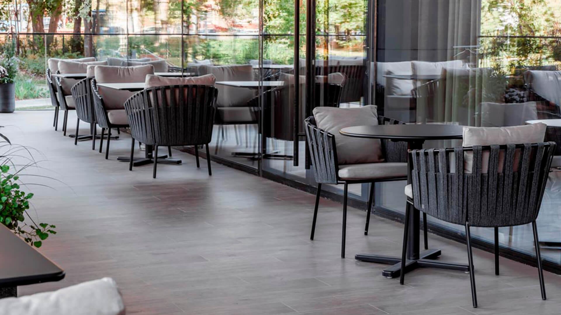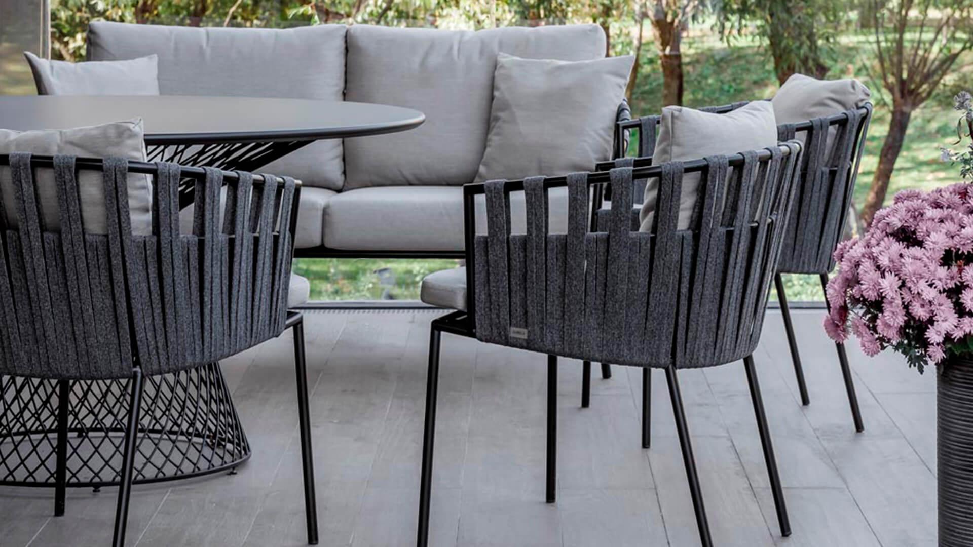 Каркас кресла выполнен из нержавеющей стали, окрашен порошковой краской. Плетение и ткани - водостойкие материалы специально для открытых пространств.