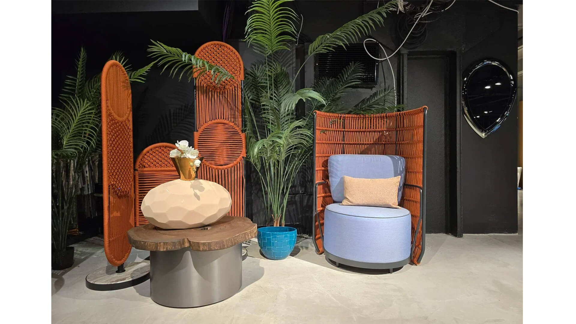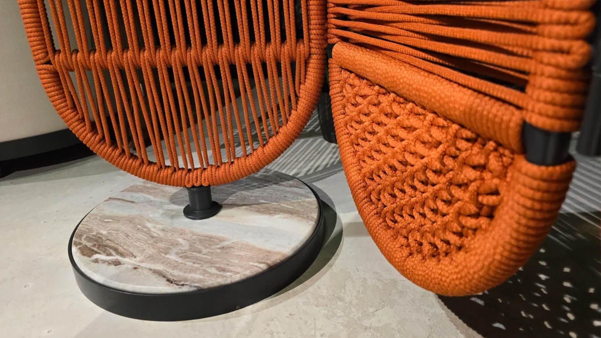 Каркас выполнен из алюминия, а плетение из фирменного шнура AuricaRope диаметром 6 мм раскрывает общую концепцию коллекции.